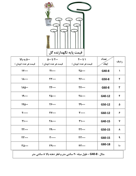 قیم فلزی کد جی۱۲-۴۰ (بسته ۱۰۰ عددی قیمت هر عدد ۲۸۰۰۰)