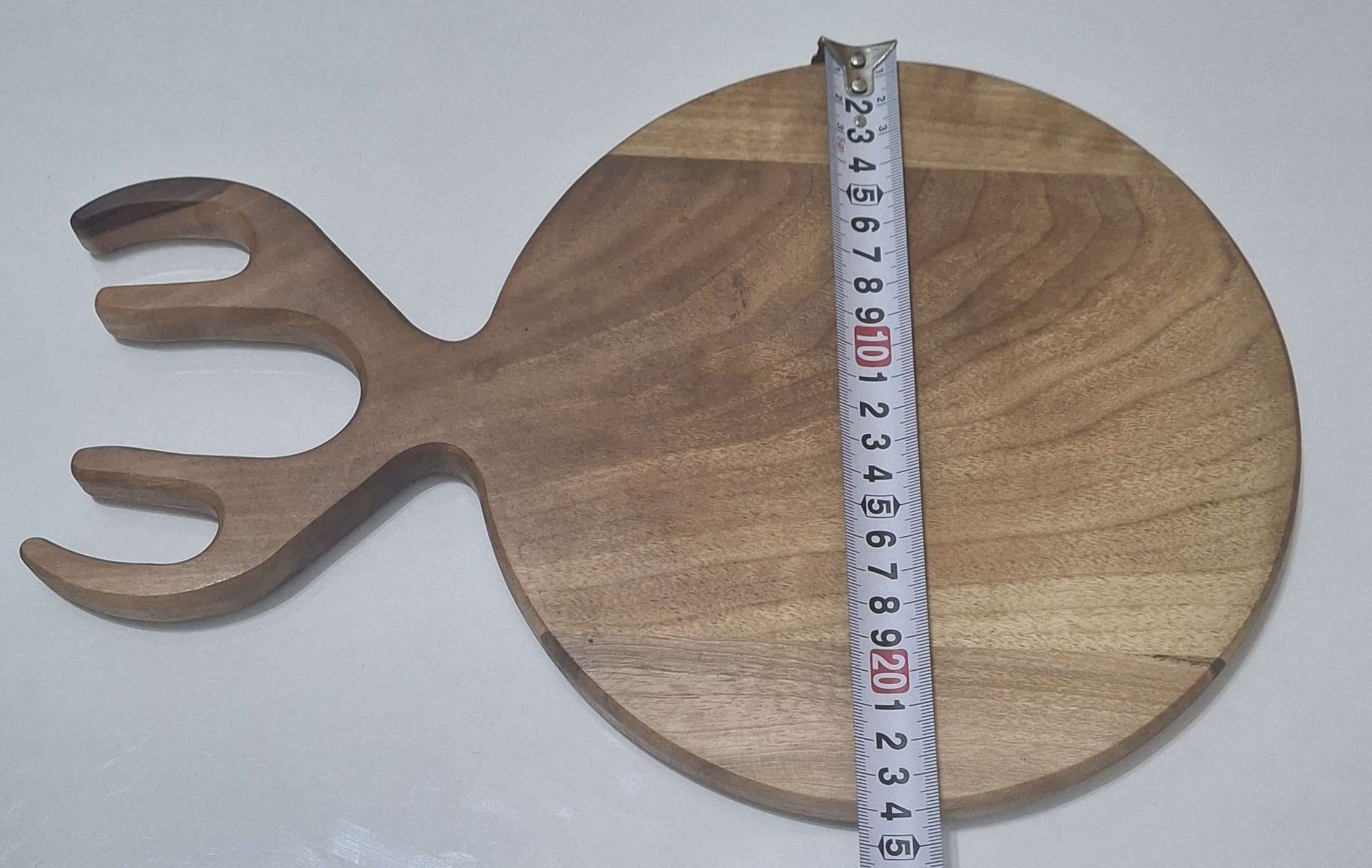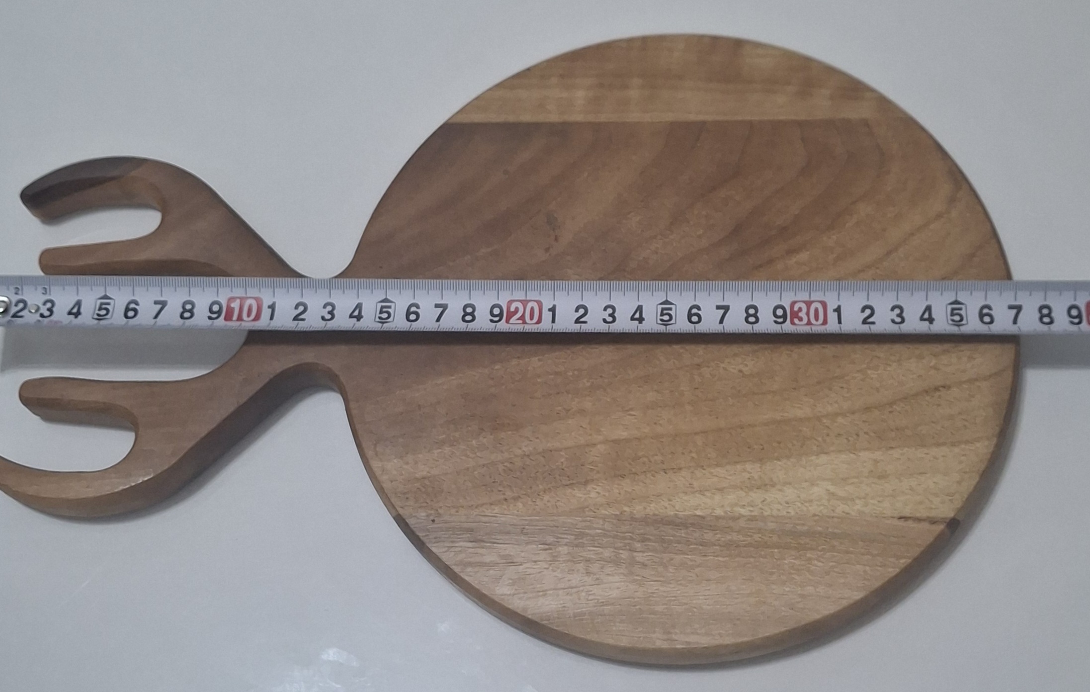 ابعاد کلی ۲×۲۴×۳۷ سانتی مت ابعاد محل سرو قطر ۲۴ سانت ضخامت ۲ سانت چوب گردو درجه یک، کیفیت تضمینی توجه شود که بلافاصله بعد از شستوشو محصول با پارچه خشکانده شود